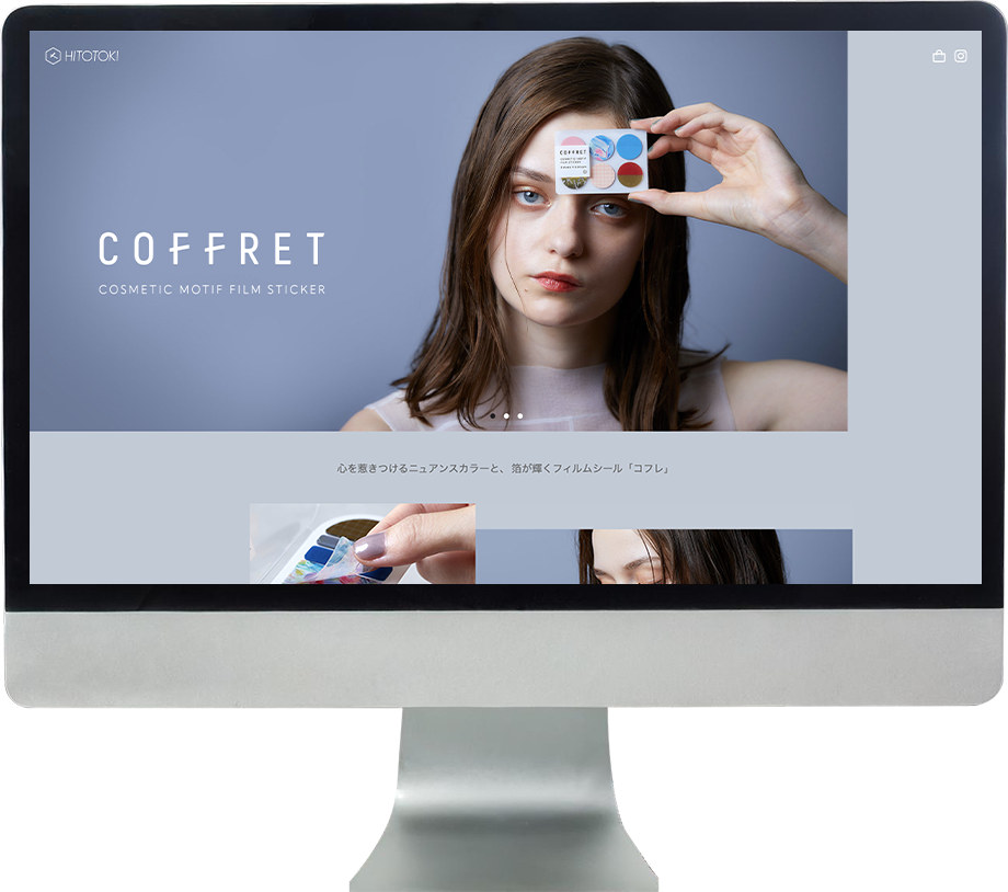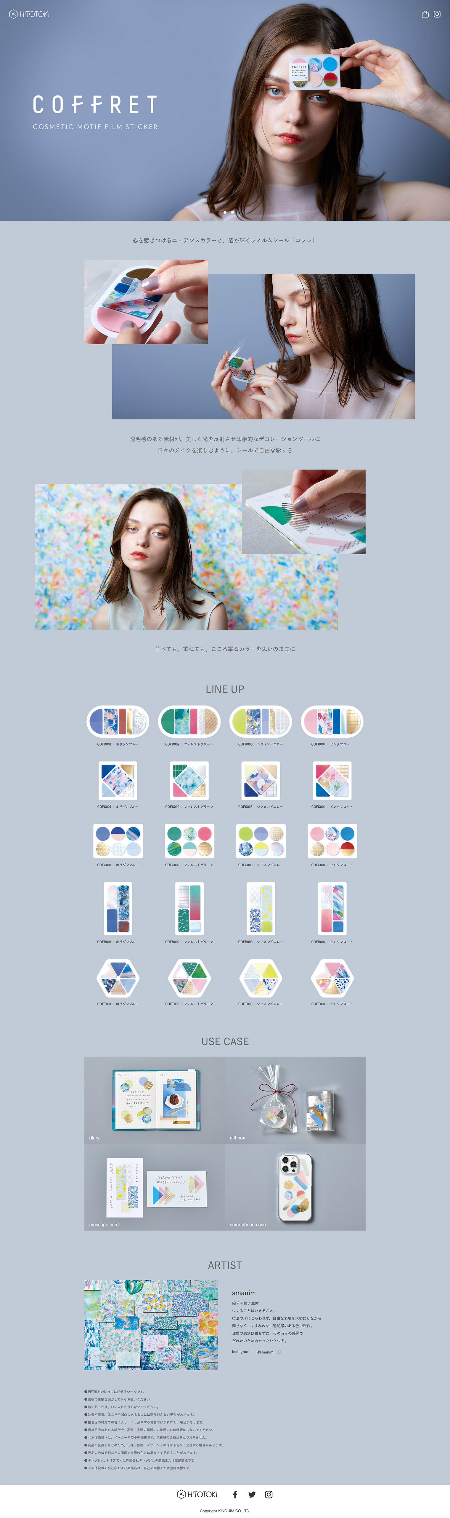 コスメをモチーフとしたシールの商品であり、イメージ写真・商品写真が魅力的なため、写真をできるだけ大きく配置しシンプルで洗練された雰囲気を感じられるデザインとしました。