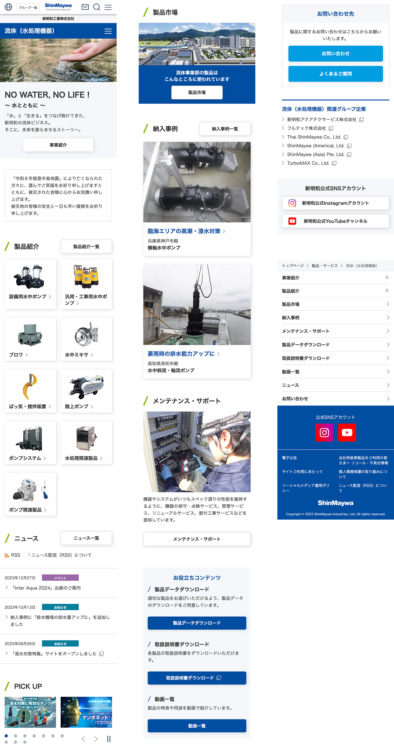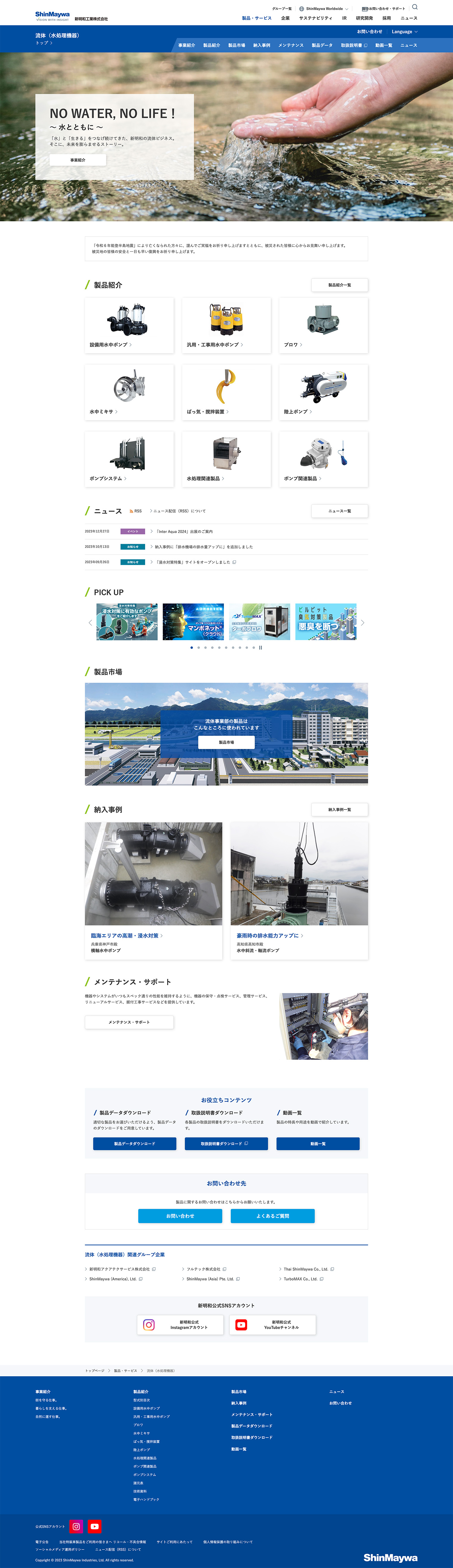 新明和工業株式会社様 「流体(水処理機器)」ページのページデザインを担当しました。