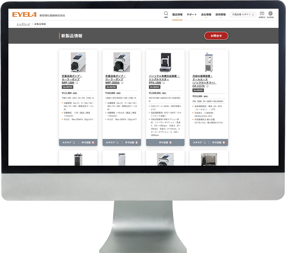 東京理化器械株式会社様 「新製品情報」ページを担当しました。