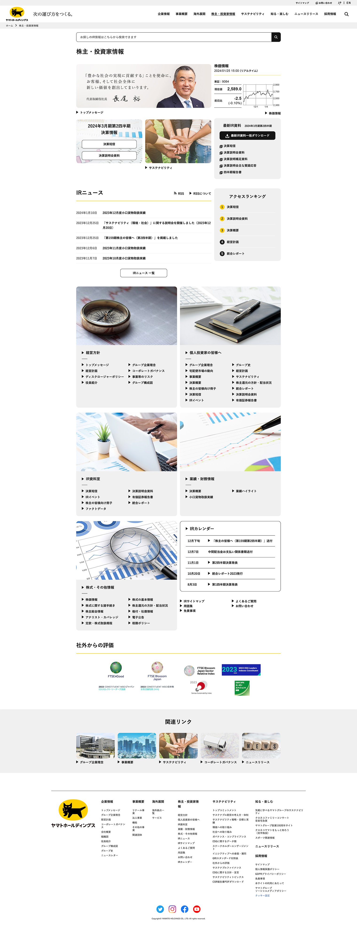 ヤマトホールディングス株式会社様 「株主・投資家情報」ページを担当しました。