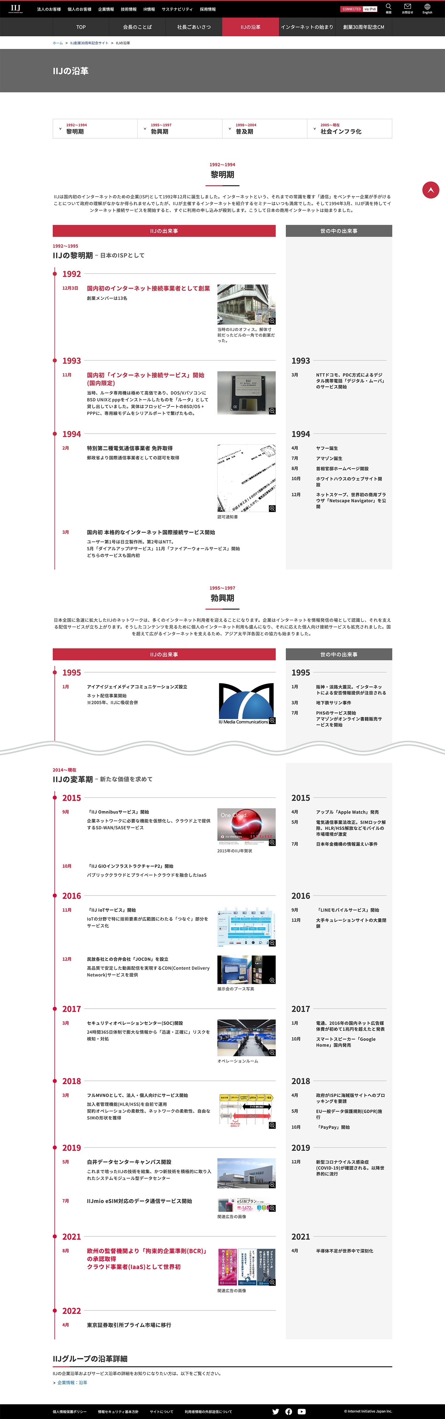 株式会社インターネットイニシアティブ様 「IIJの沿革」ページのページデザインを担当しました。