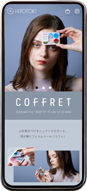 コスメをモチーフとしたシールの商品であり、イメージ写真・商品写真が魅力的なため、写真をできるだけ大きく配置しシンプルで洗練された雰囲気を感じられるデザインとしました。