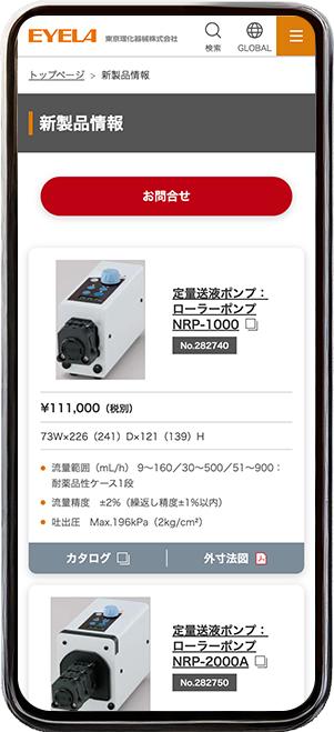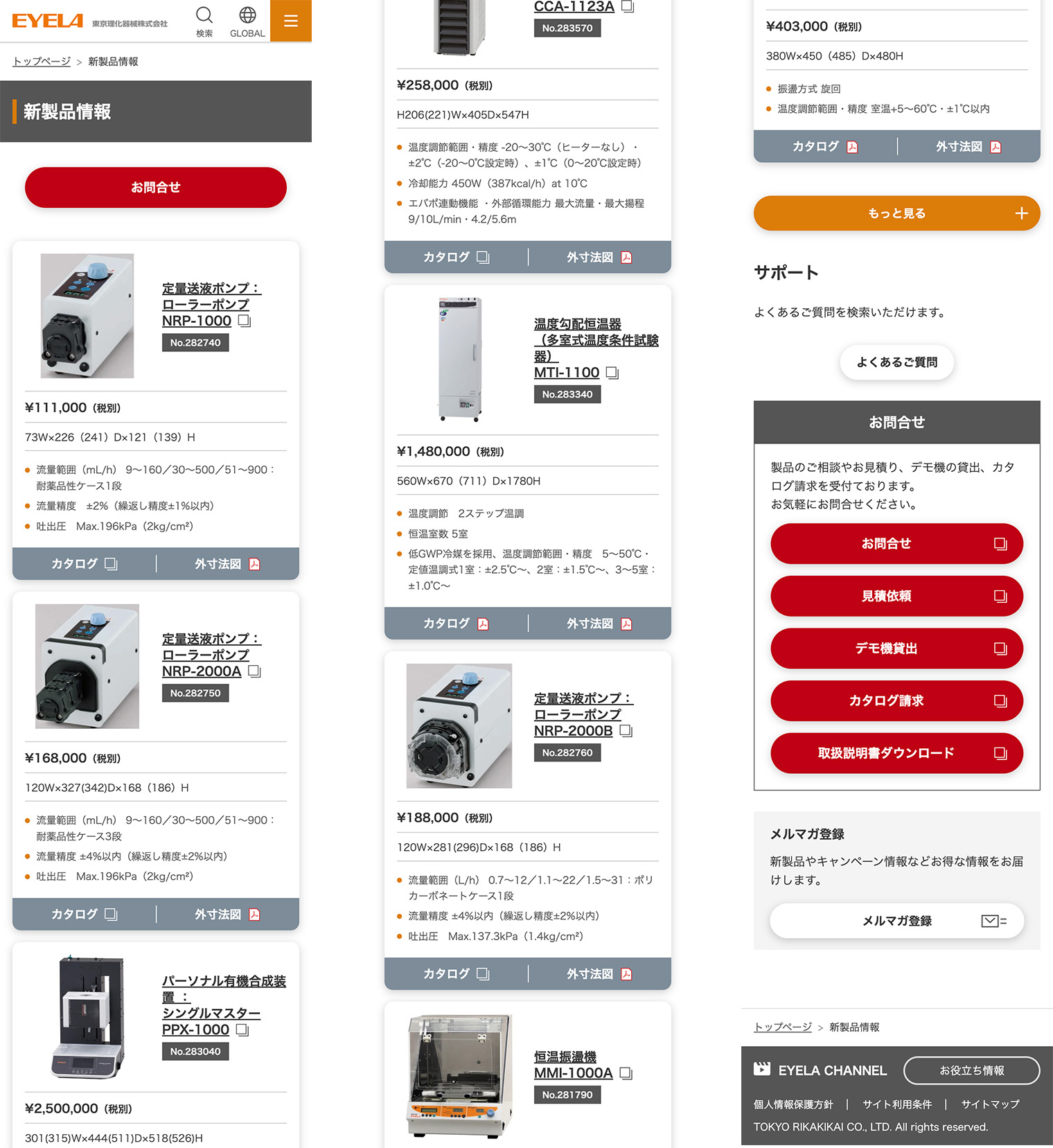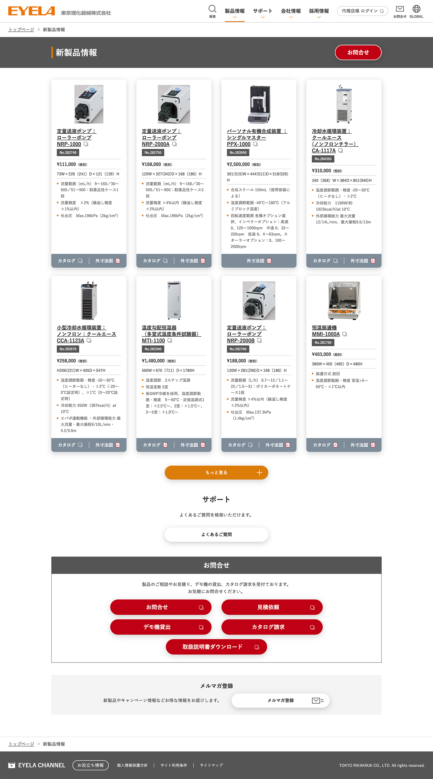 東京理化器械株式会社様 「新製品情報」ページを担当しました。