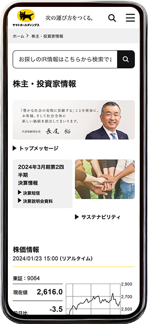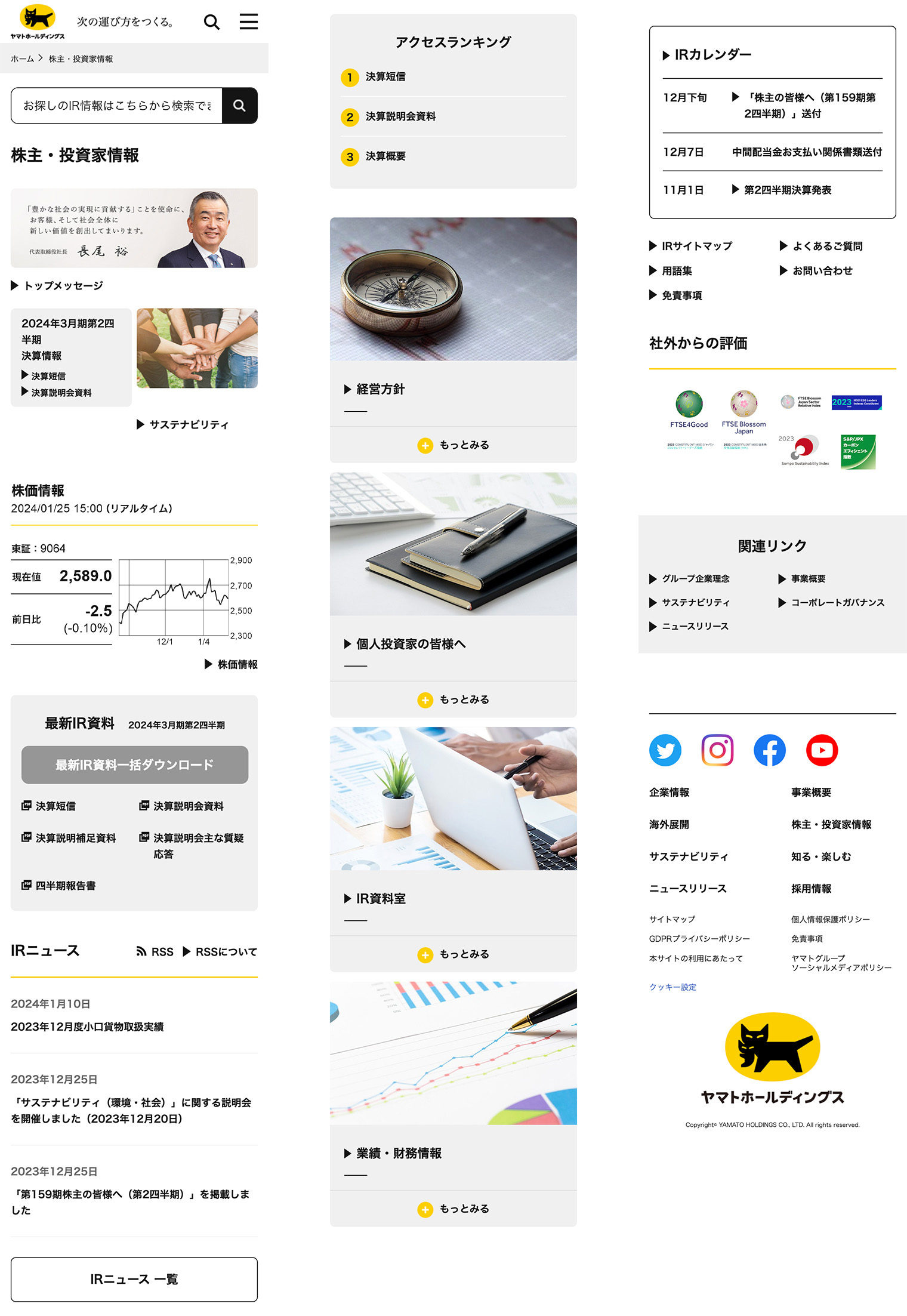 ヤマトホールディングス株式会社様 「株主・投資家情報」ページを担当しました。
