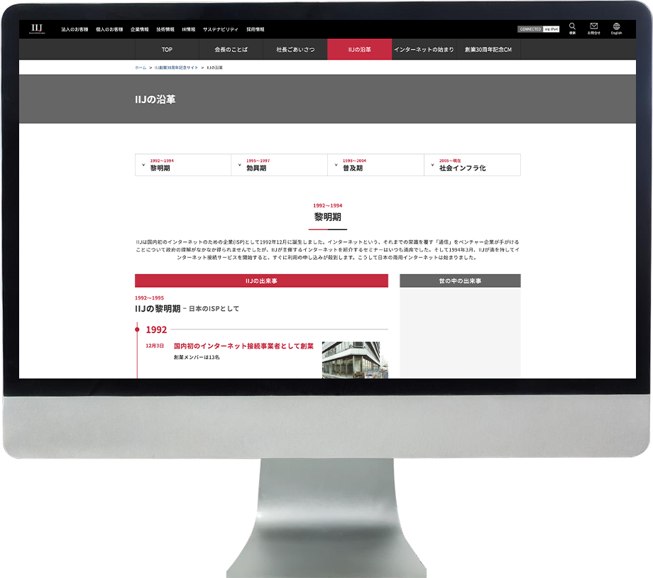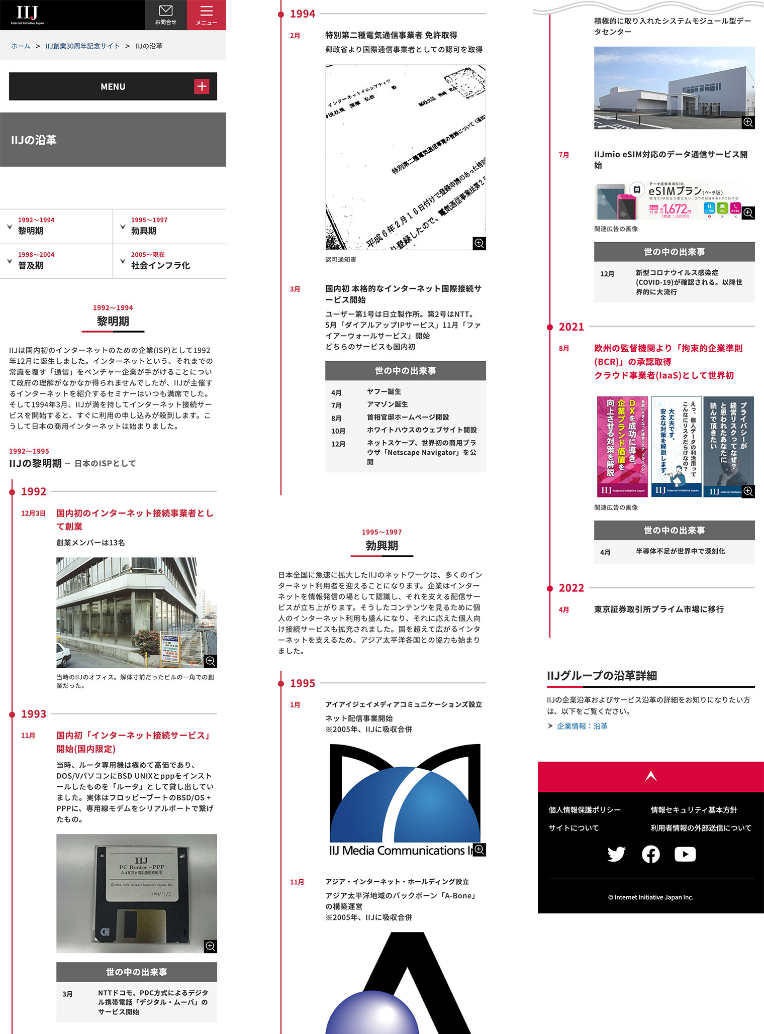 株式会社インターネットイニシアティブ様 「IIJの沿革」ページのページデザインを担当しました。